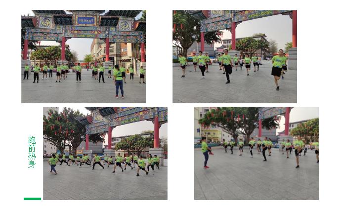 開跑前,熱身運(yùn)動(dòng)必不可少。美女副團(tuán)長(zhǎng)劉曉霞帶領(lǐng)跑團(tuán)成員們做跑前拉伸運(yùn)動(dòng),動(dòng)作專業(yè),力度合適,一系列訓(xùn)練有素的熱身動(dòng)作引得路人紛紛圍觀點(diǎn)贊,成為華陽湖拈花寺前一道亮麗的風(fēng)景!