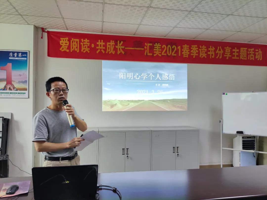 分享會伊始,人力資源部主任王曼表示:匯美是一個有學習、有成長、有溫度的團隊,自創(chuàng)建學習型匯美以來,在學習的道路上,匯美人始終以空杯心態(tài)勤學、善學、踐學。此次“愛閱讀·共成長”讀書分享會是互促互補、思想碰撞的學習交流,通過讀書分享,匯美團隊可以汲取更多的知識,同時增強學習的緊迫感,激發(fā)學習成長的熱情,從而鼓勵大家砥礪品德、勤奮學習,努力成為有理想、有擔當、有智慧的匯美力量。隨后,王主任對此次主動分享的三位匯美讀書“達人”表示感謝,并希望有更多的匯美善學者加入到“讀書、分享”的隊伍中來。