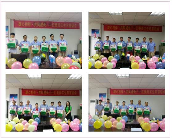 生日會(huì)上,禮物自然是不能少的!與會(huì)嘉賓工會(huì)主席黃洪、黨支部書(shū)記王曼、車(chē)間主任胡年豐、車(chē)間助理主任陳楚華分別為全體壽星們送上了匯美“生日大禮包”。精心準(zhǔn)備的禮物,傾注了公司對(duì)匯美人的親切關(guān)懷;暖心相伴的茶話會(huì),帶給了伙伴們無(wú)限溫暖的記憶。