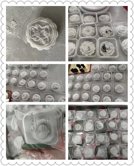 此次月餅的餡料不僅有紅豆、蓮蓉等傳統(tǒng)口味,還有深受大家喜愛的紫薯、抹茶等口味。模具也是圖案各異、花樣繁多,精致的花瓣、可愛的玉兔、溫暖的愛心,呆萌的小熊.....大家看著豐富的DIY材料包,都迫不及待的想盡快展示自己的匠心巧手。大家分工合作,和粉、稱料、捏皮,裹餡、壓花、包裝,一步一步有條不紊地進(jìn)行著,把節(jié)日的祝福揉進(jìn)圓圓的冰皮月餅中,用心制作、寄以深情。