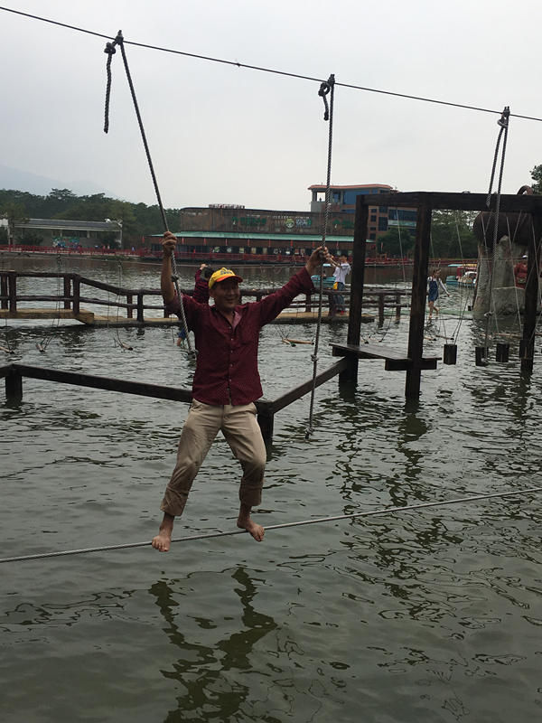 看著一陣陣歡笑傳來(lái),同事們也忍不住上橋躍躍欲試,